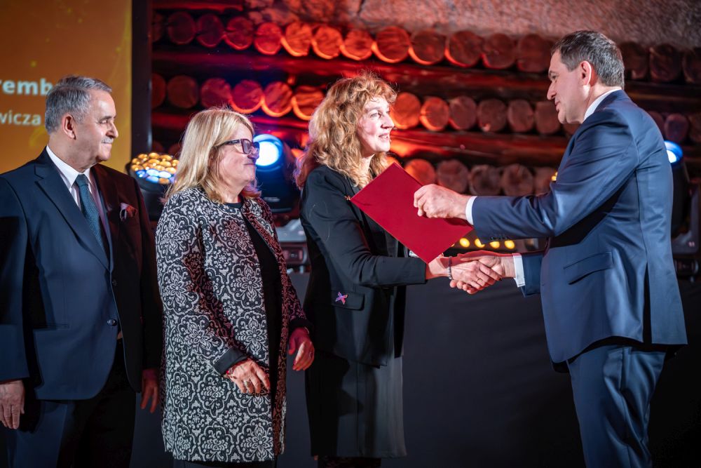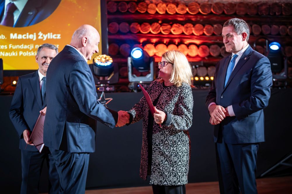 Od prawej: Prof. Jerzy Lis, Prof. Arkadiusz Mężyk, Prof. Maria Mrówczyńska, Prof. Paweł Kaczmarczyk, Tomasz Orłowski, Katarzyna Specjalska, Prof. Andrzej Jajszczyk, Olga Vakhrina, Prof. Teofil Jesionowski, Prof. Bogusława Drelich-Skulska, Prof. Maciej Duszczyk, Prof. Krzysztof Walkowiak, Waldemar Siwiński